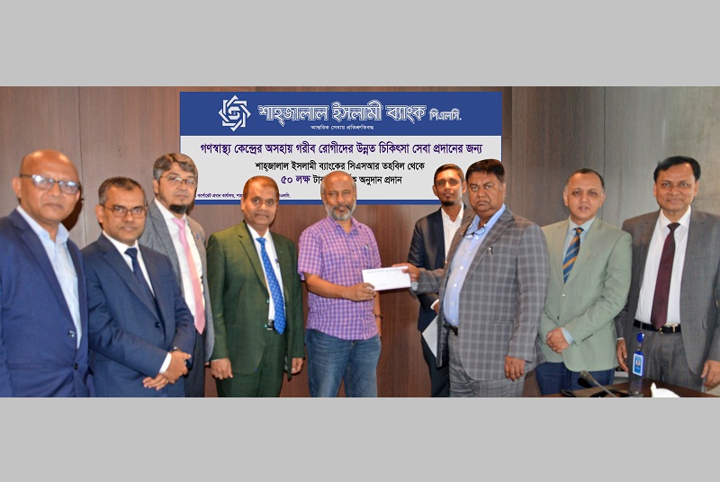 Shahjalal Islami Bank PLC donated Tk. 50 Lac to Gonoshasthaya Kendra to provide better medical services at low cost to the poor and destitute patients of the society.